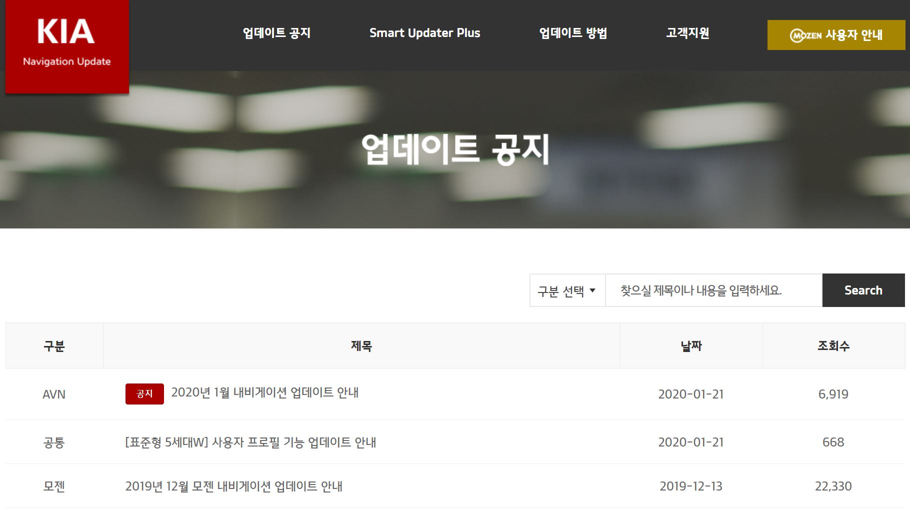 기아자동차 내비게이션 업데이트 공식 홈페이지