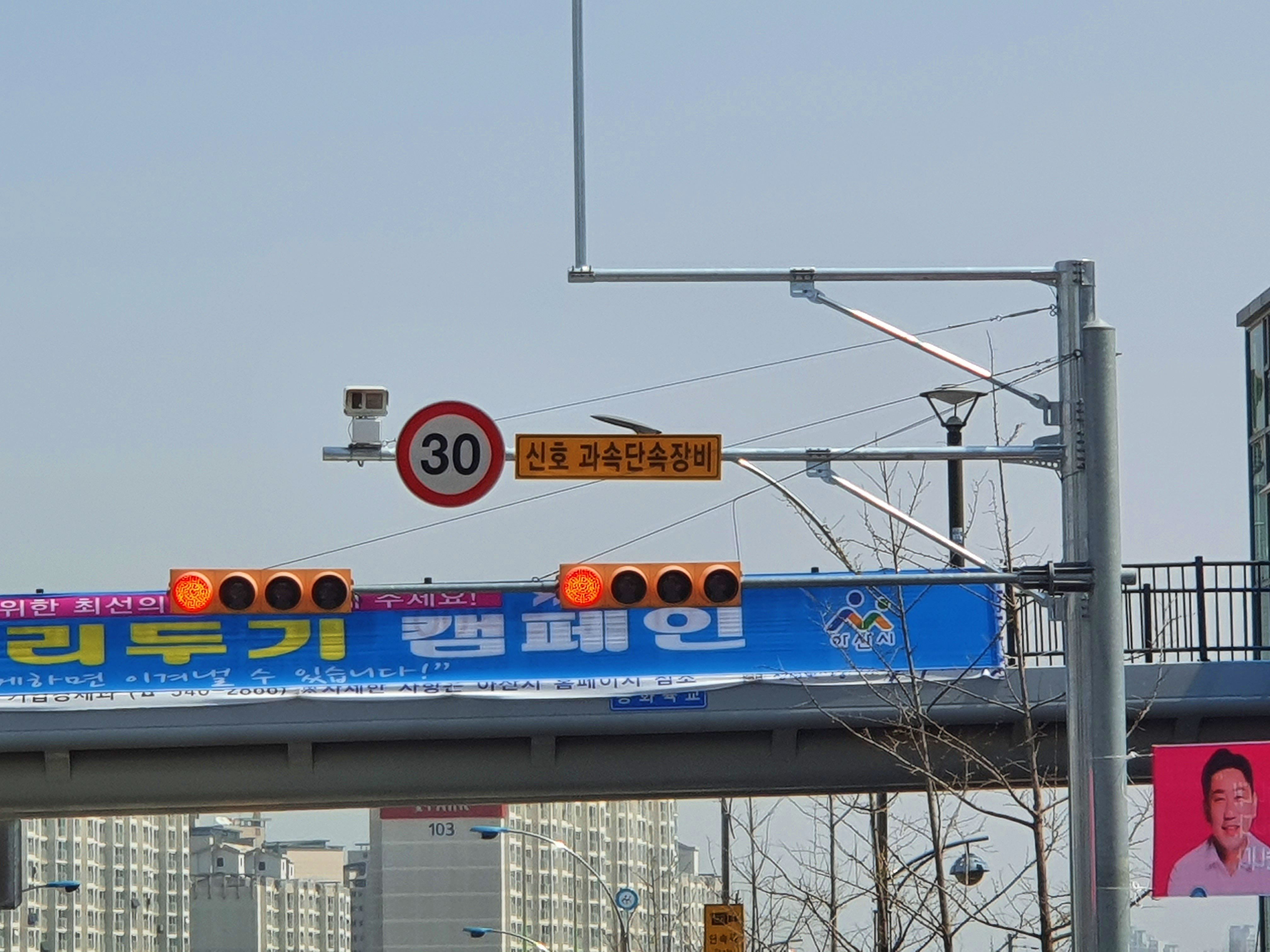 어린이 보호구역 내 신호등과 과속단속카메라