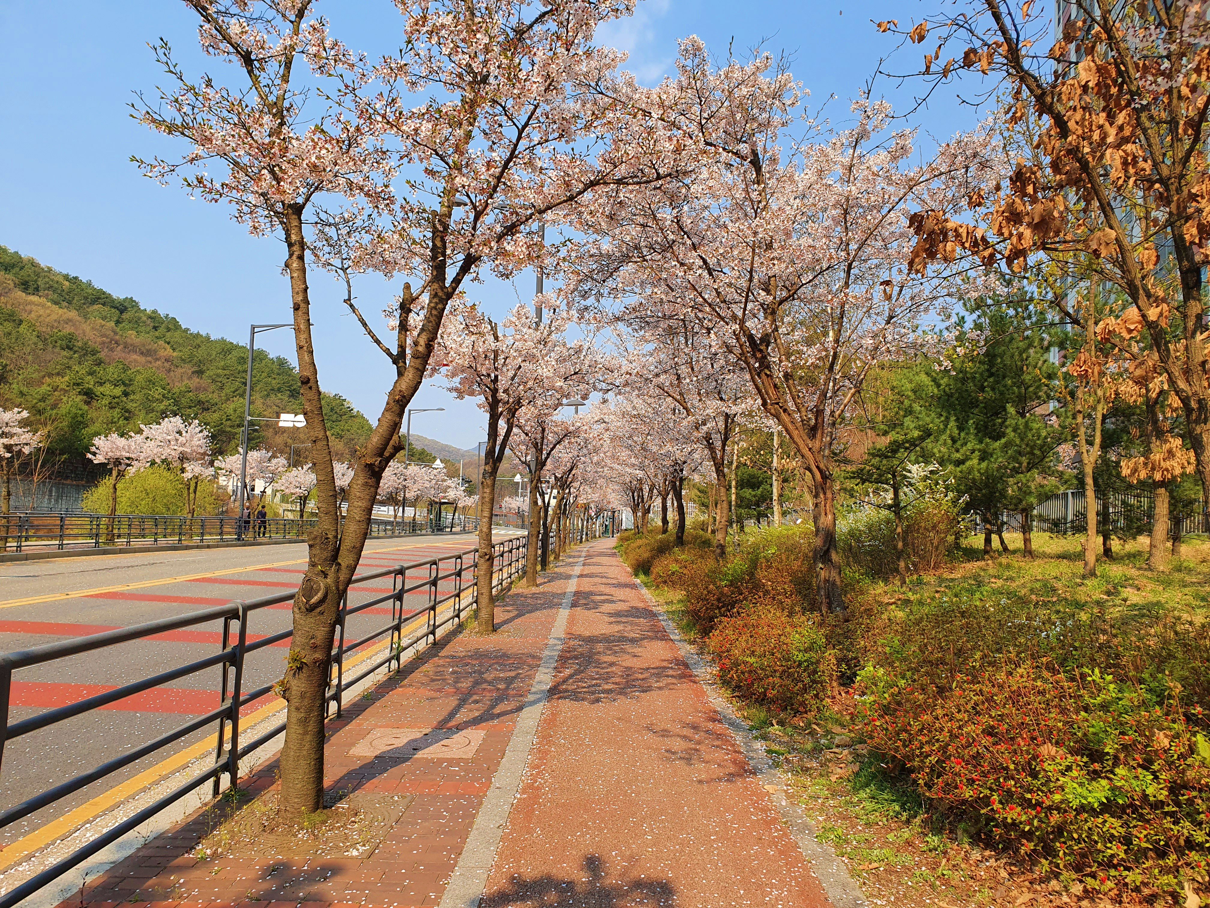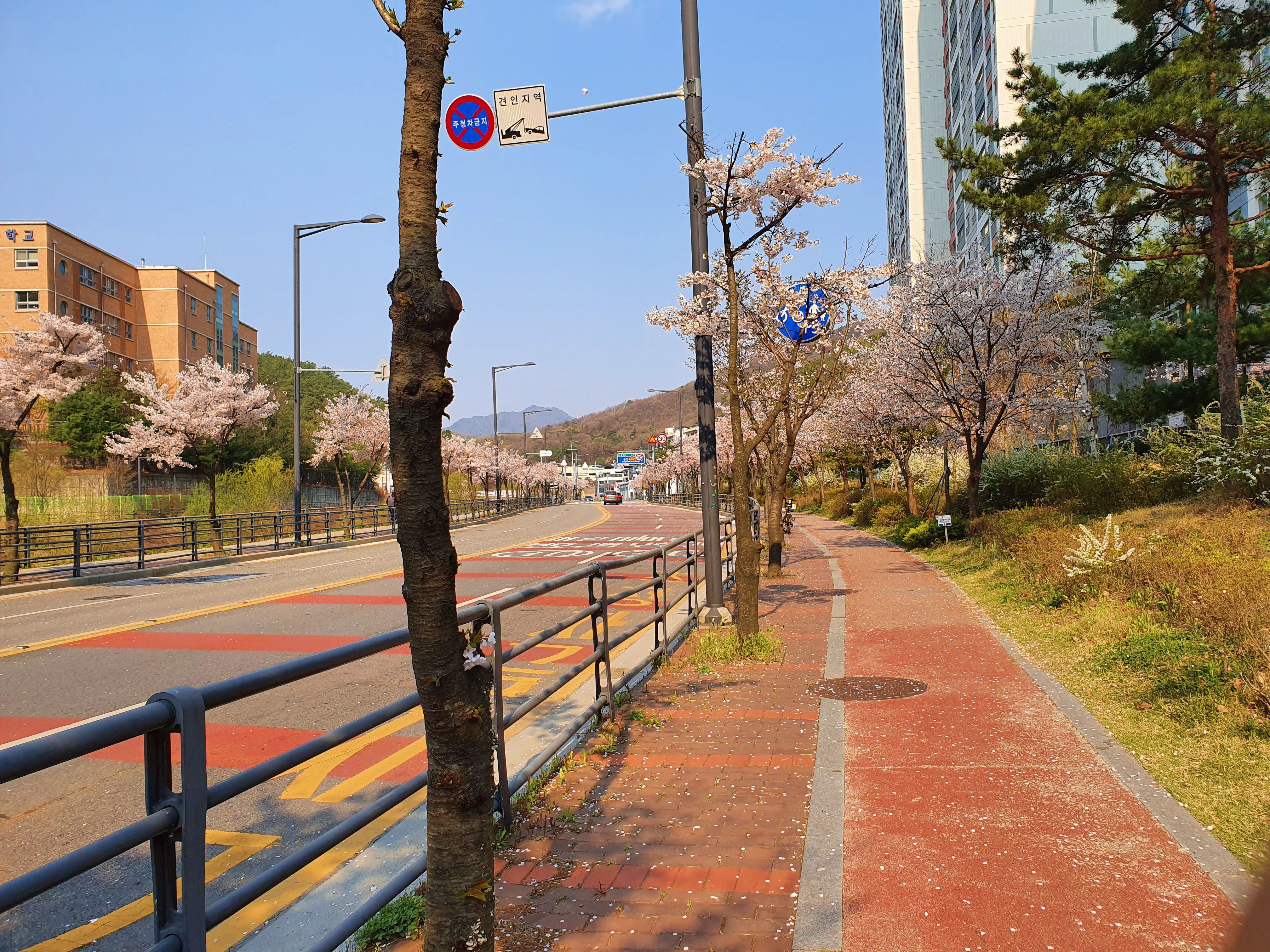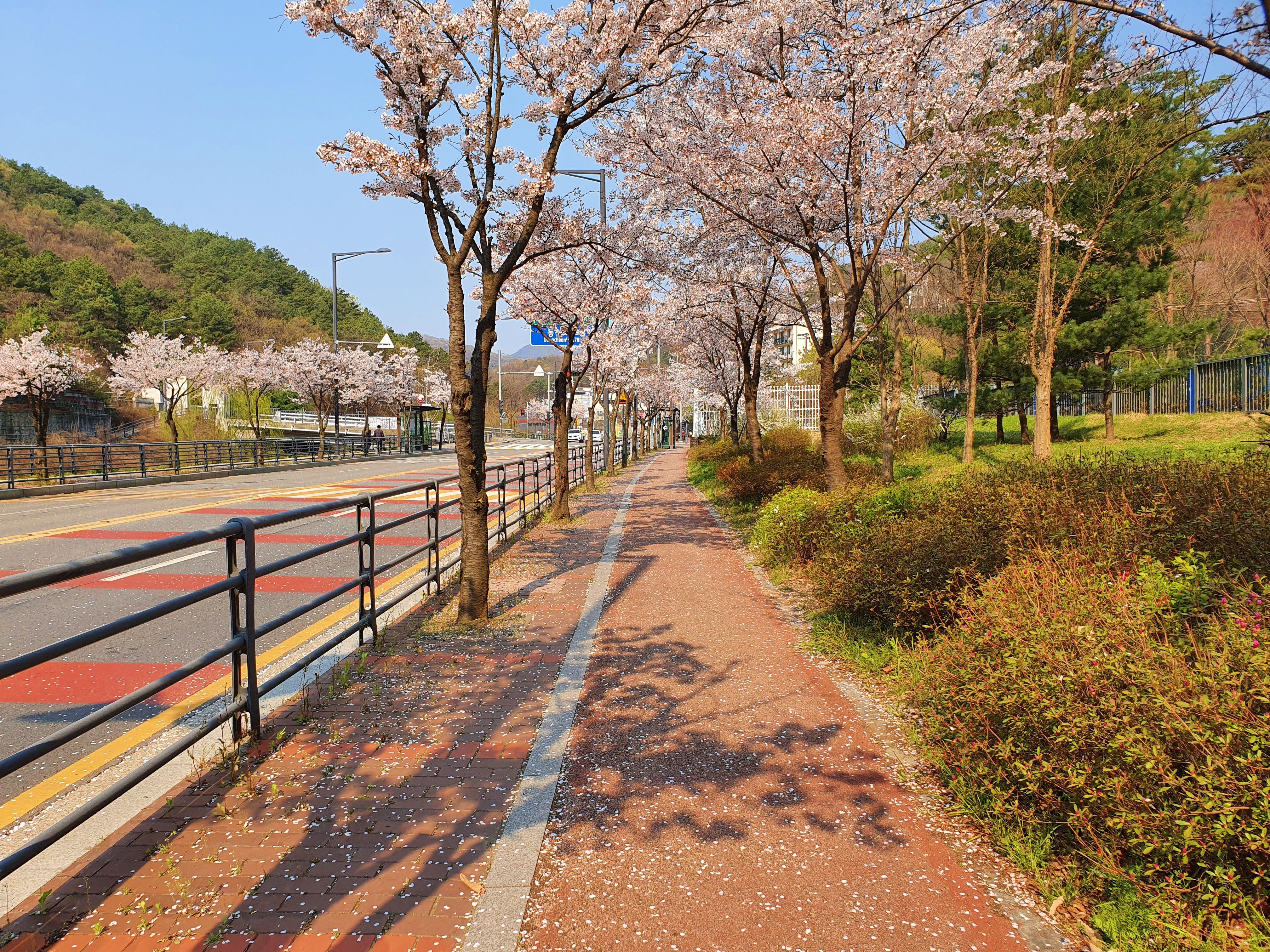 걸어가는 길에 벚꽃이 너무 이쁘게 펴서
