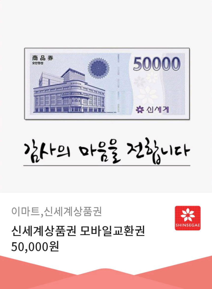 신세계상품권은 5천원, 1만원, 5만원, 10만원,