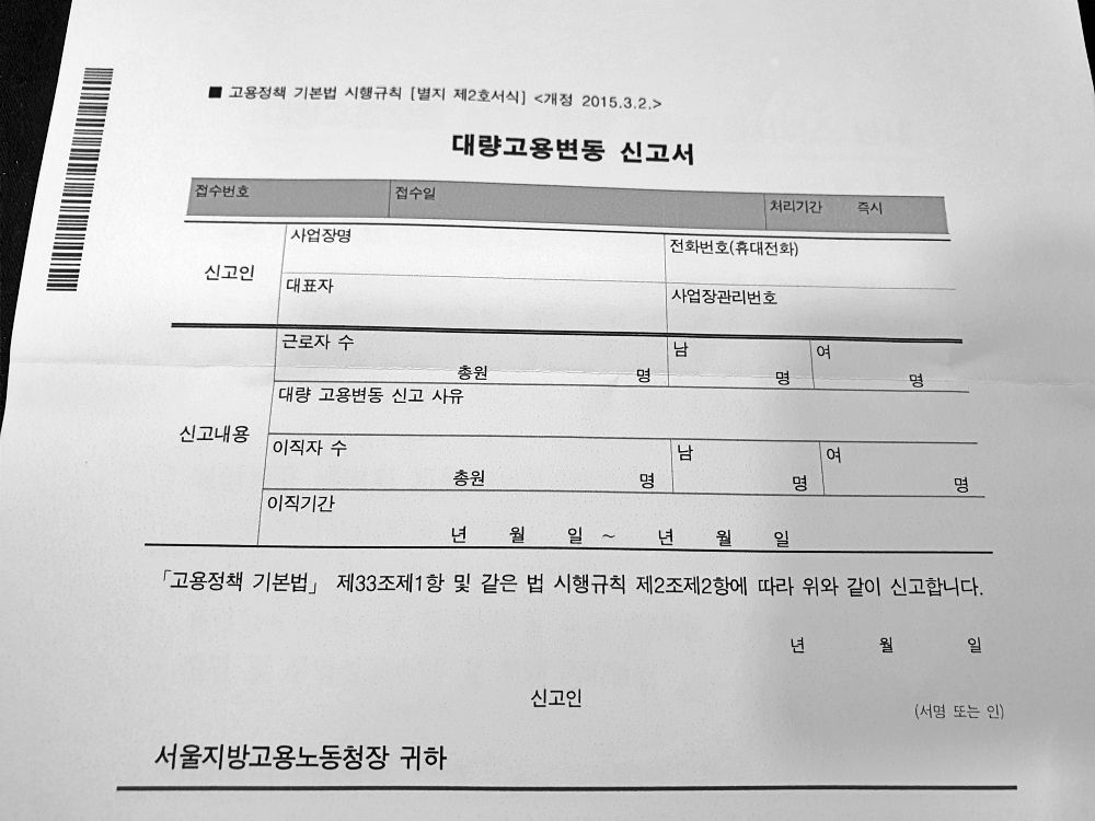 [대량고용 변동신고서]를 제출