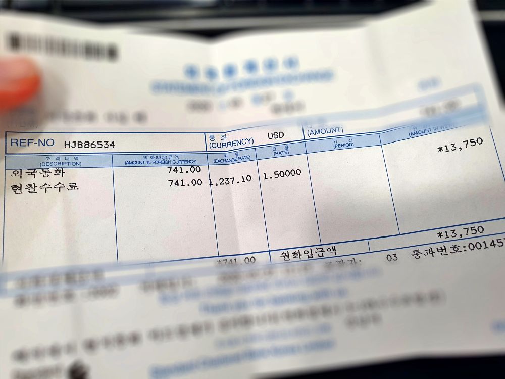 SC제일은행의 경우 현찰수수료 13,750원