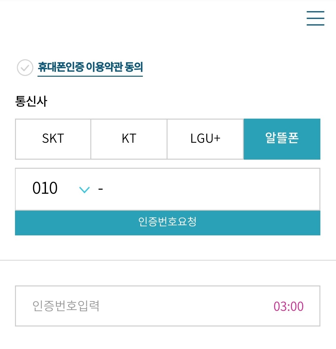 그리고 휴대폰인증을 받기 위한 전화번호