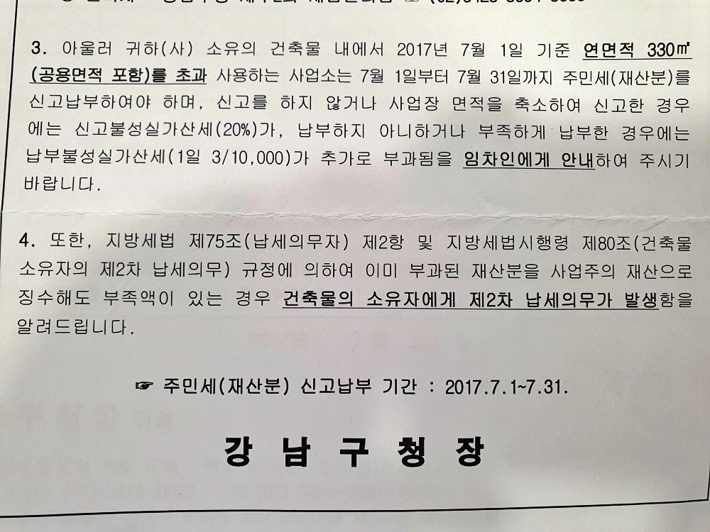 2020년 7월 1일 기준 연면적 330㎡(100평) 이상
