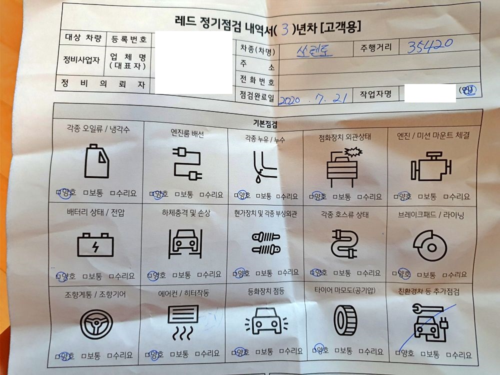 기아자동차 3년차 정기점검에는