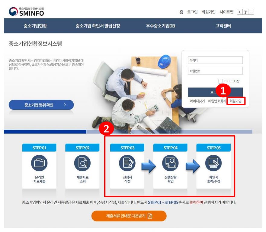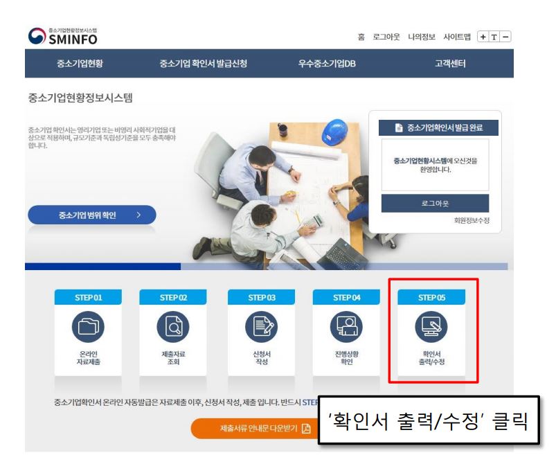 중소기업확인서 발급을 진행하는
