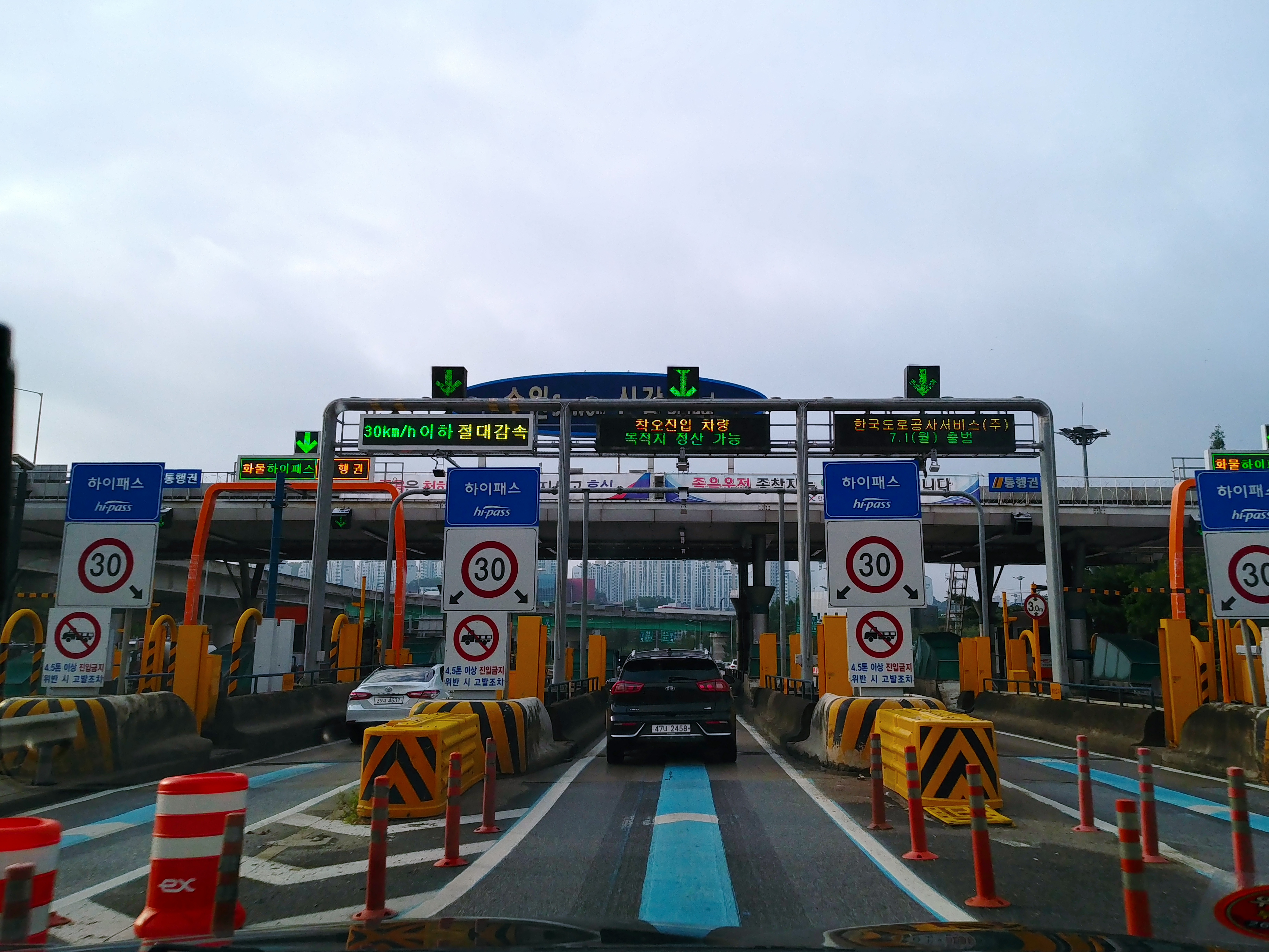 하이패스 차로를 통과하면 되고