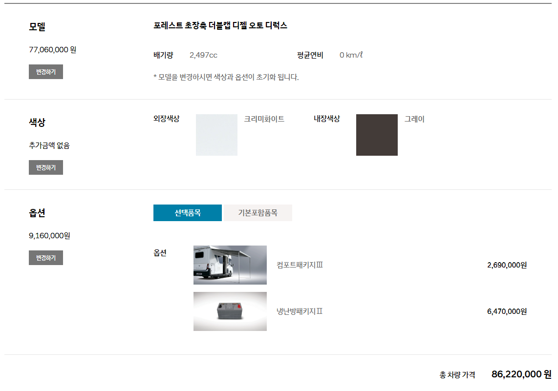 포터캠핑카 디럭스 모델은 77,060,000원까지
