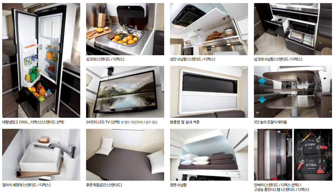 전자레인지, 스마트 룸 등 캠핑카 필수품들이