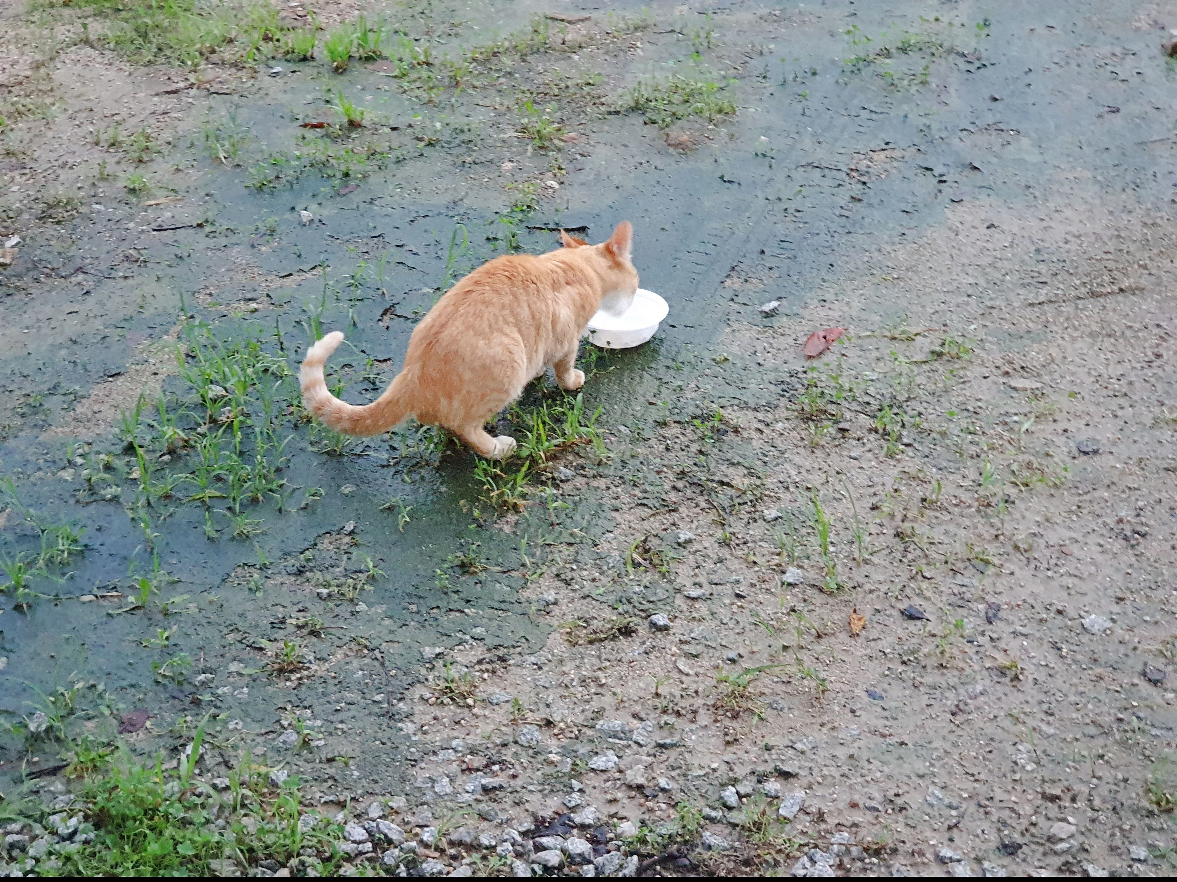 자주 찾아오는 고양이가 배가 홀쭉해서