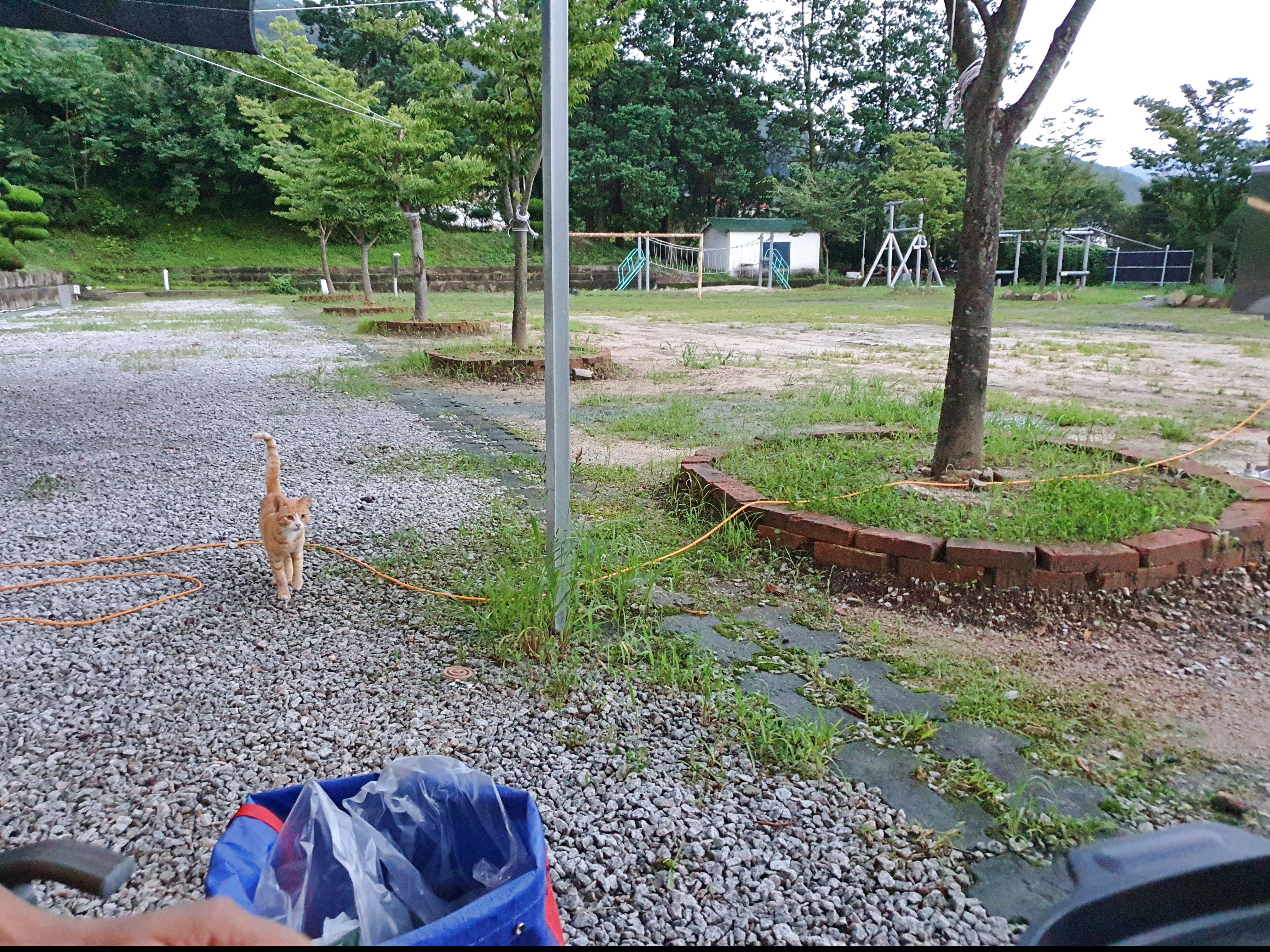 캠핑장에서 고양이 또는 동물에게