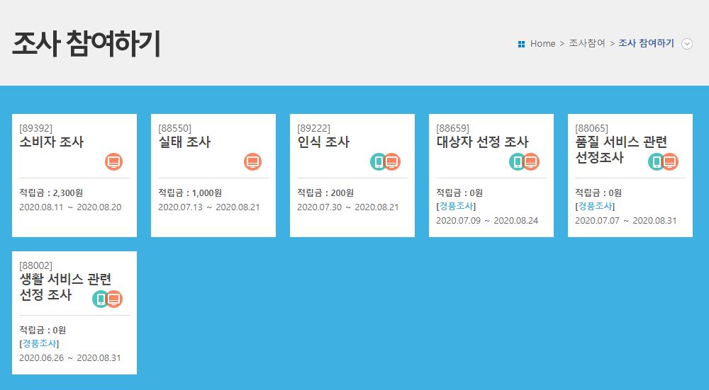 제가 참여하고 있는 설문조사 알바는