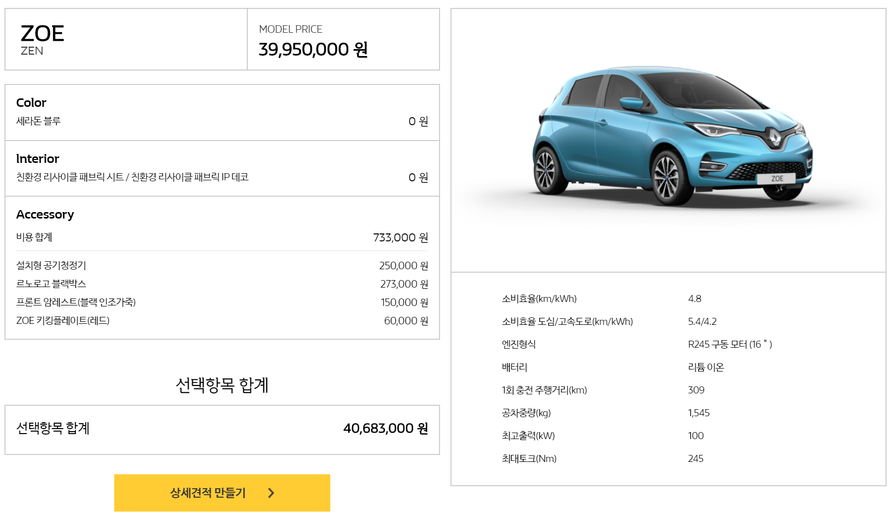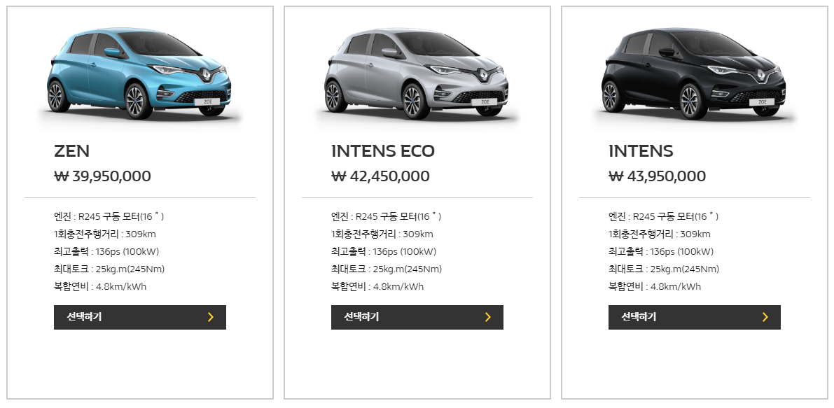 르노 조에 전기차 구입가격은 4,200만원이지만
