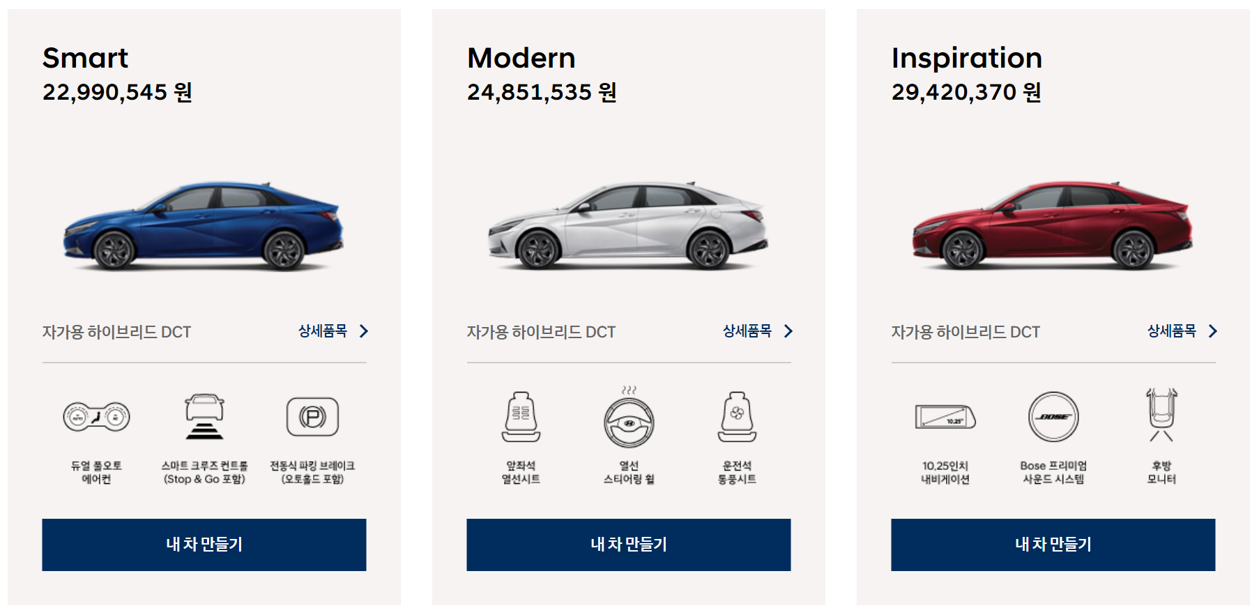 현대자동차의 아반떼 및 소나타와 함께