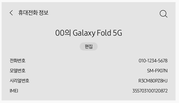 신청시 입력한 갤럭시폴드5G의 IMEI 정보와