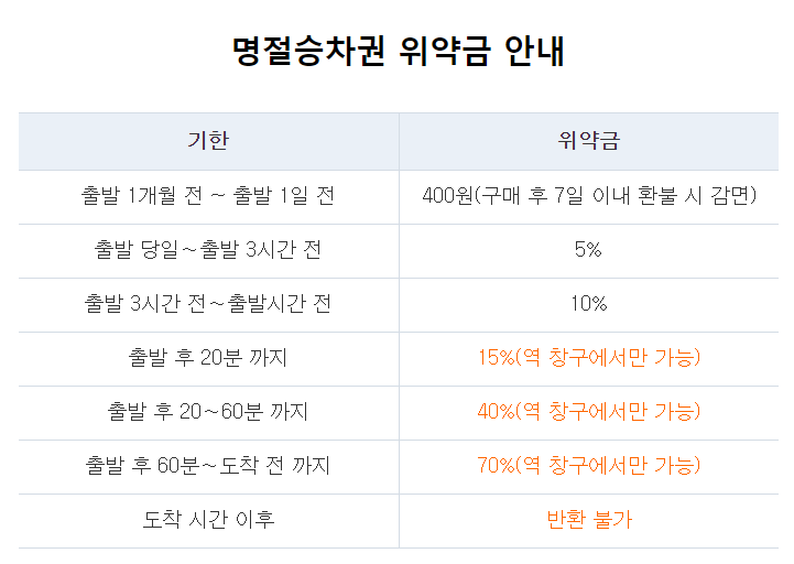 코레일추석승차권 예매 후 취소시