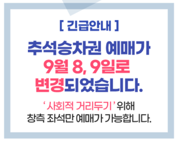 2020년 추석 승차권 예약 전용 홈페이지