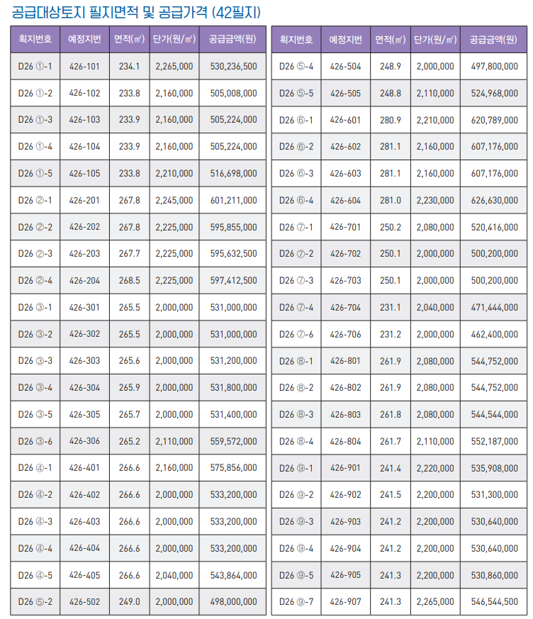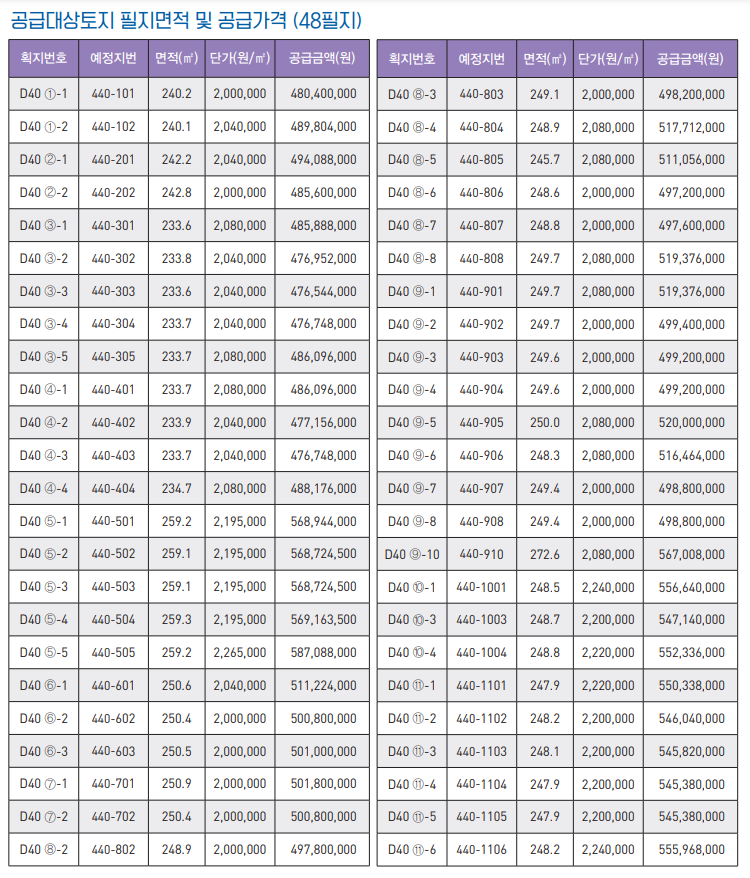 단독주택 용지 공급가격을 보면
