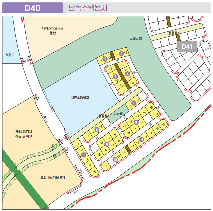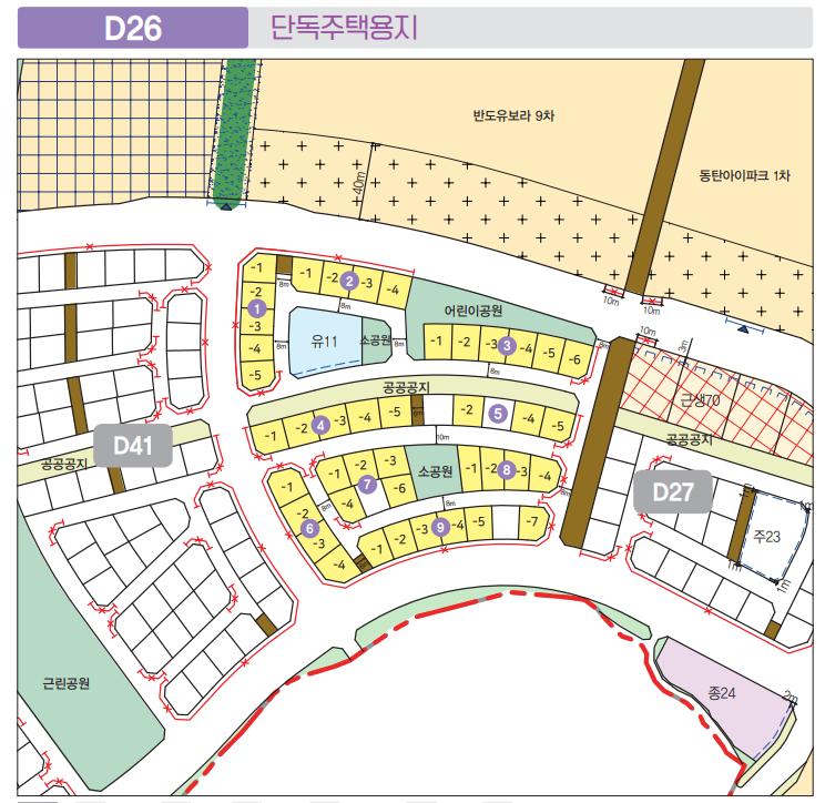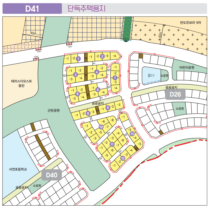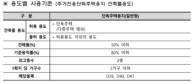 주거전용 단독주택 144필지로 D26, D40, D41블럭