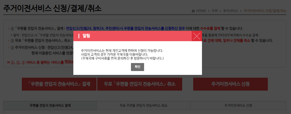 신청할 수 있는 우체국 주소이전서비스