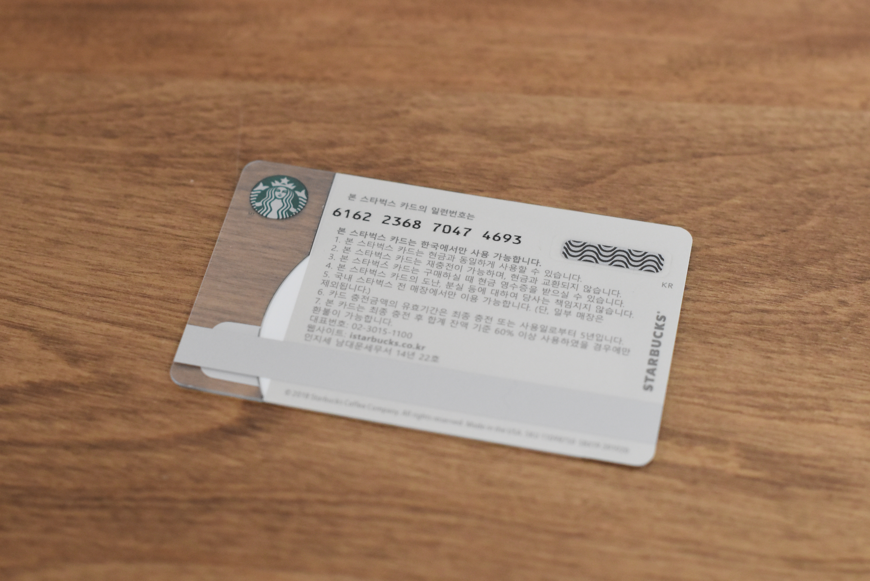 스타벅스 카드 후면에 적혀있는 16자리 카드번호