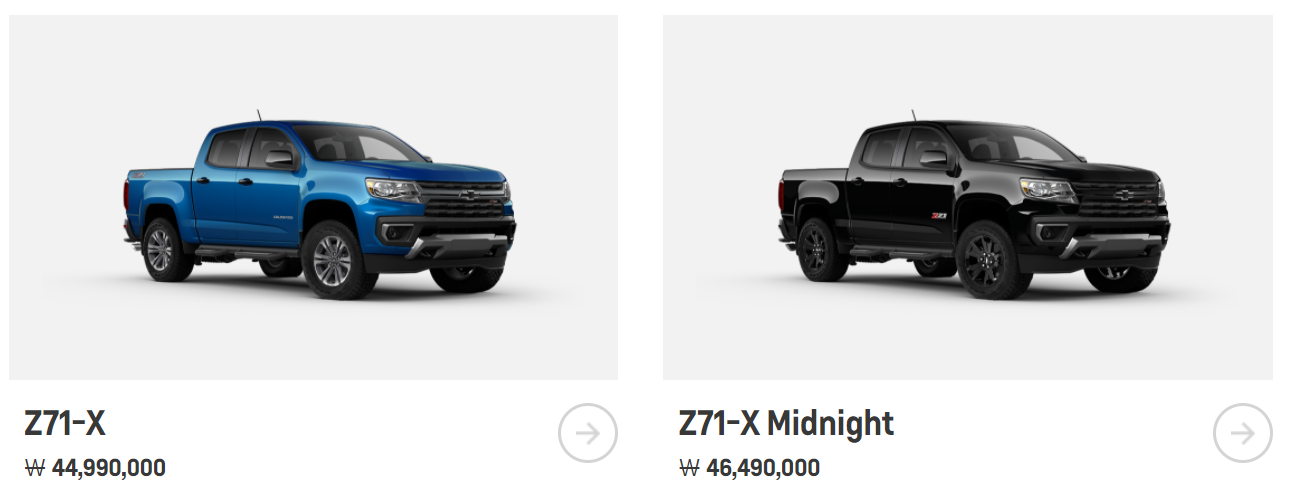 쉐보레 신형 콜로라도의 가격은 트림별로