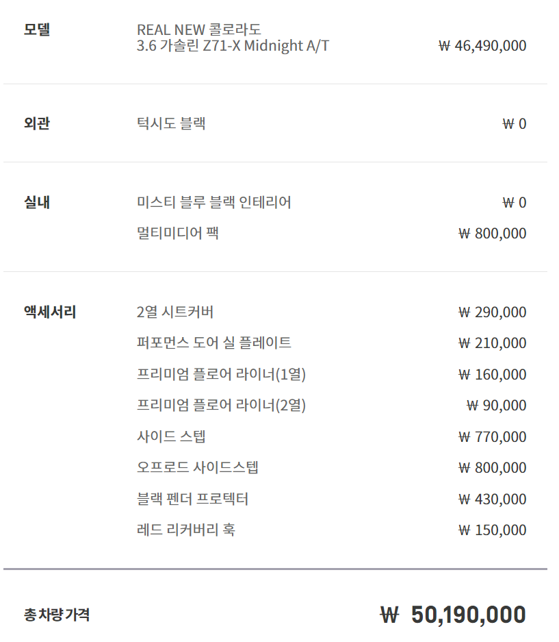 쉐보레 리얼뉴 콜로라도 옵션으로