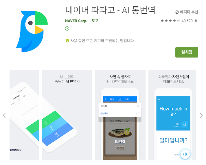 이젠 스마트폰에 파파고번역기 필수네요.