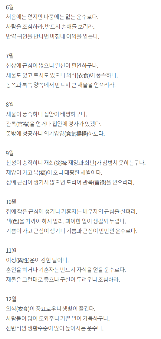 쭈~욱 월별 운세도 나왔는데