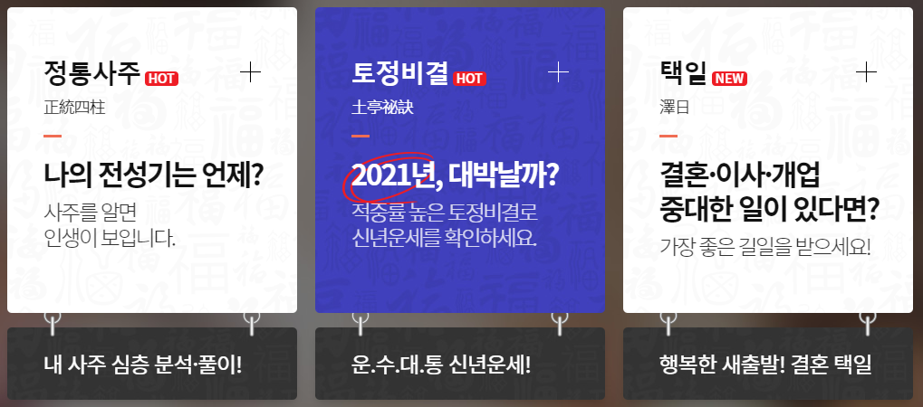 2021 무료신년운세 조회 가능한 곳
