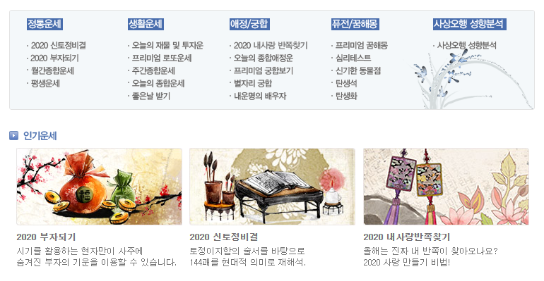 라이프스타일 > 운세보기 접속