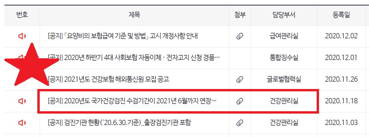 국민건강보험공단에 11월 공지된