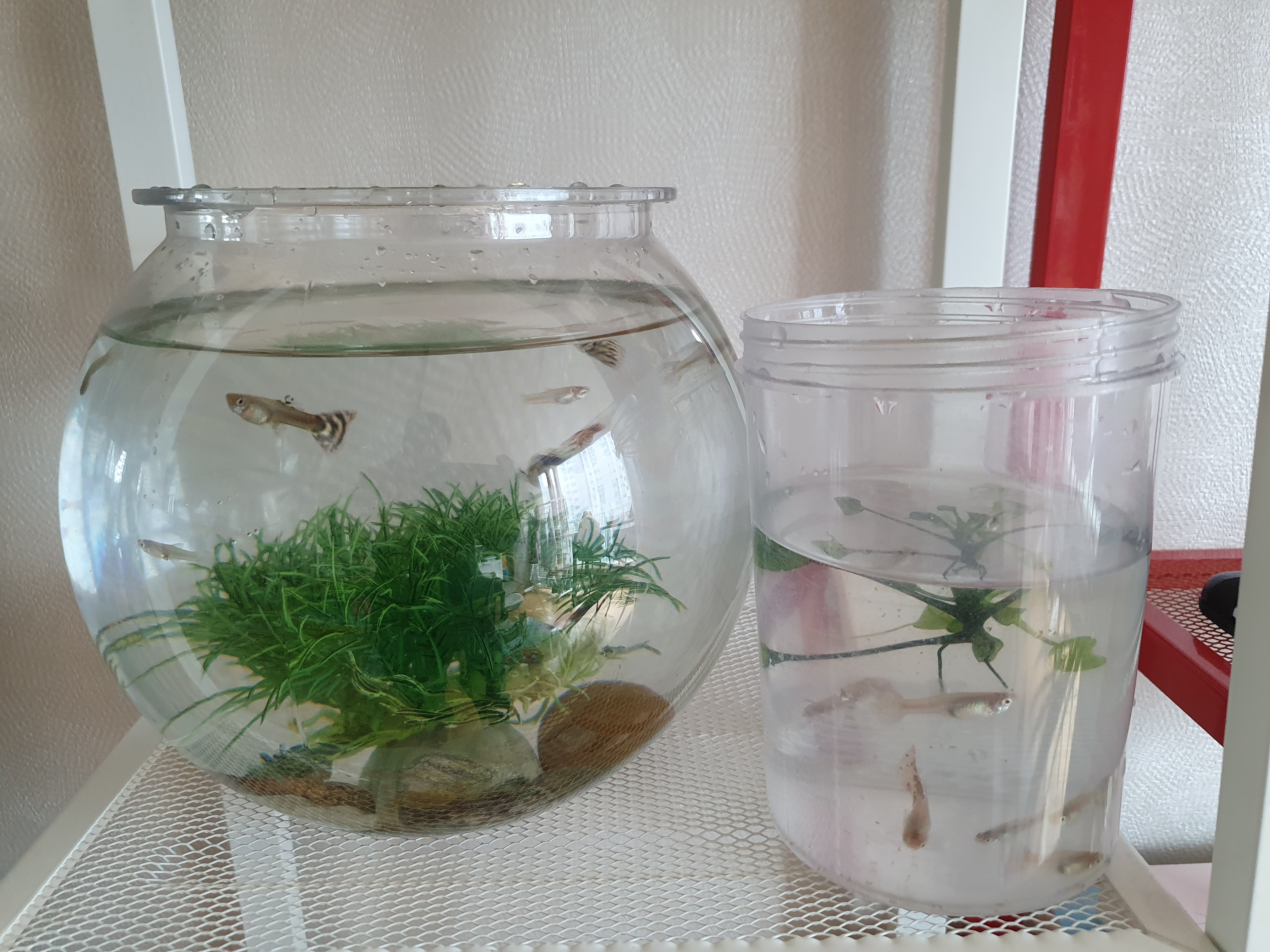 구피어항 청소 후 2개로 나눴는데