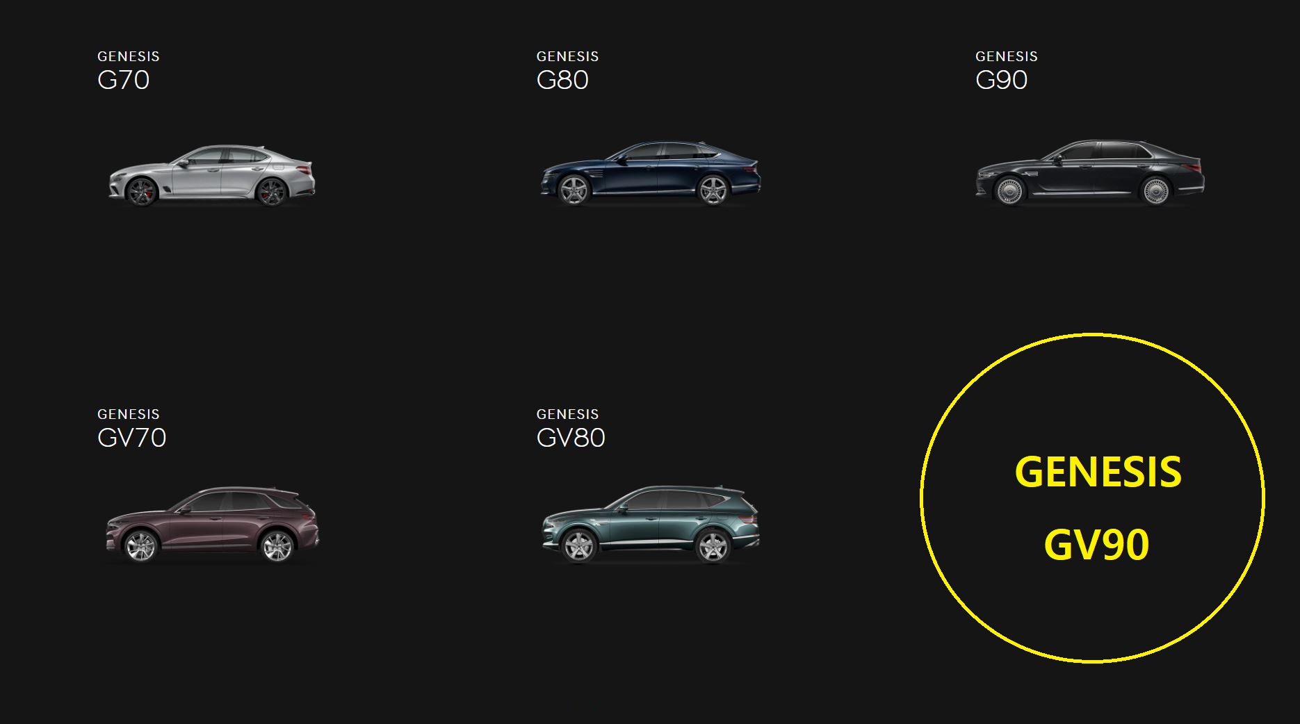 6개의 차종 중 마지막은 GV90 이라는 것은
