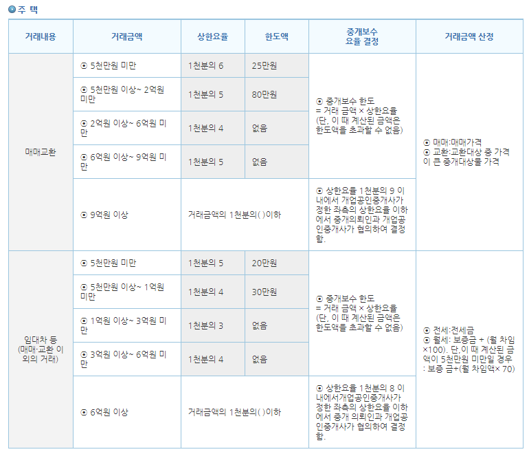아파트와 주택의 부동산 중개수수료는