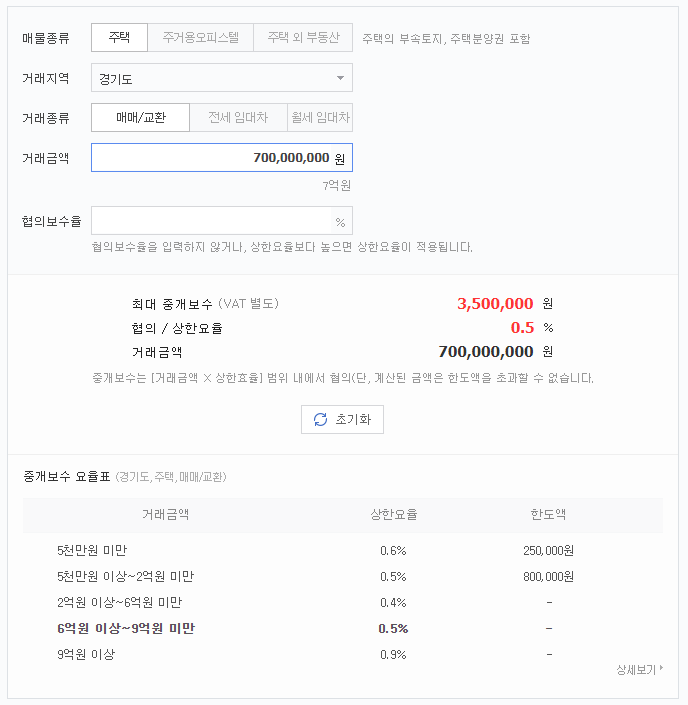 부동산 중개수수료 계산기에서 0.9%