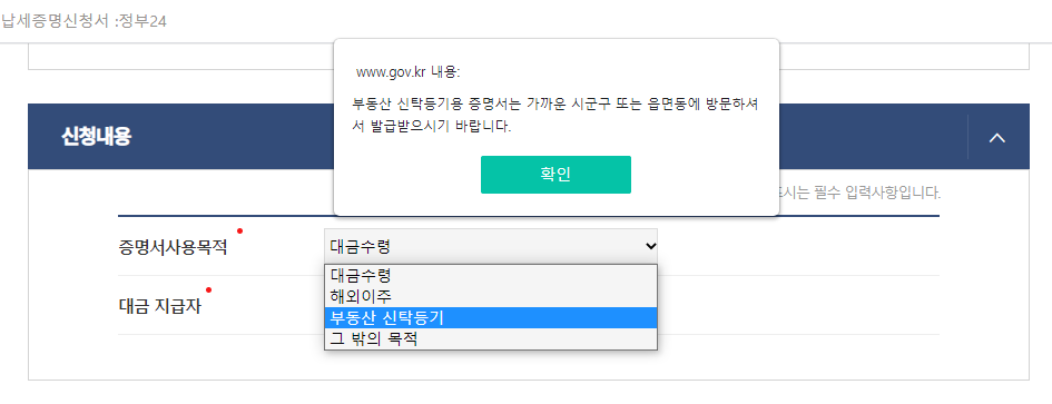 인터넷 발급은 안 되고 시군구 직접 방문으로