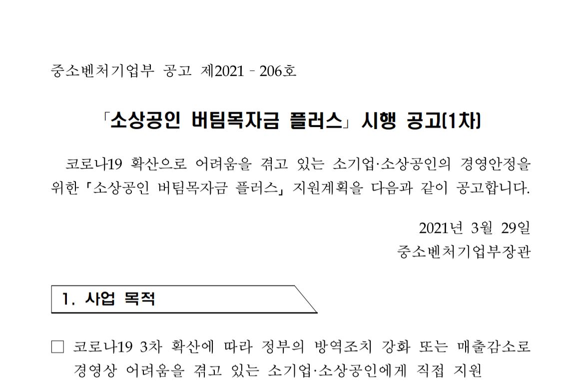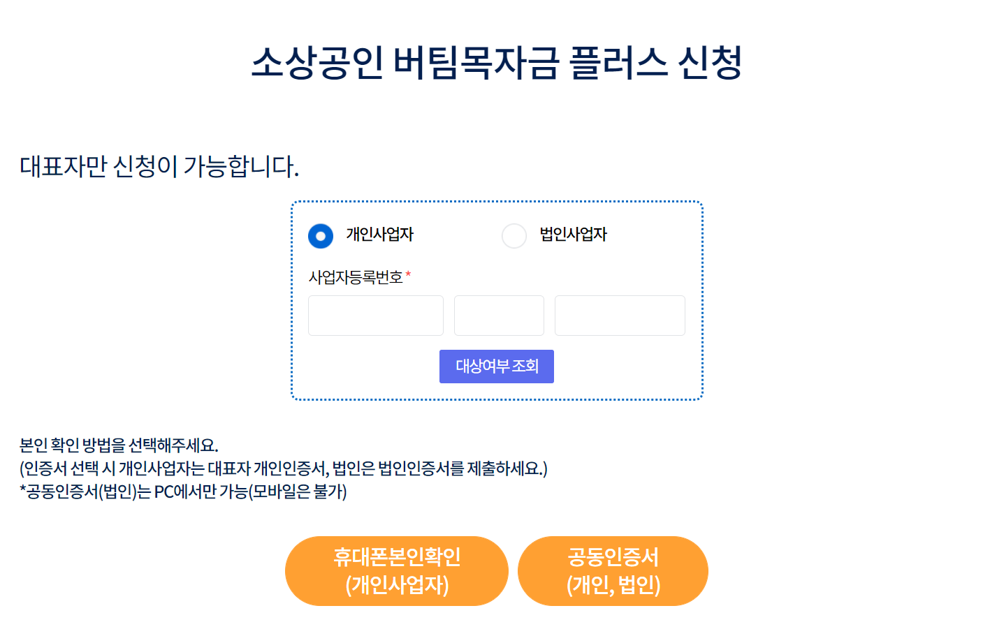 소상공인 버팀목자금 플러스 소개, 신청하기, 신청결과 확인 등