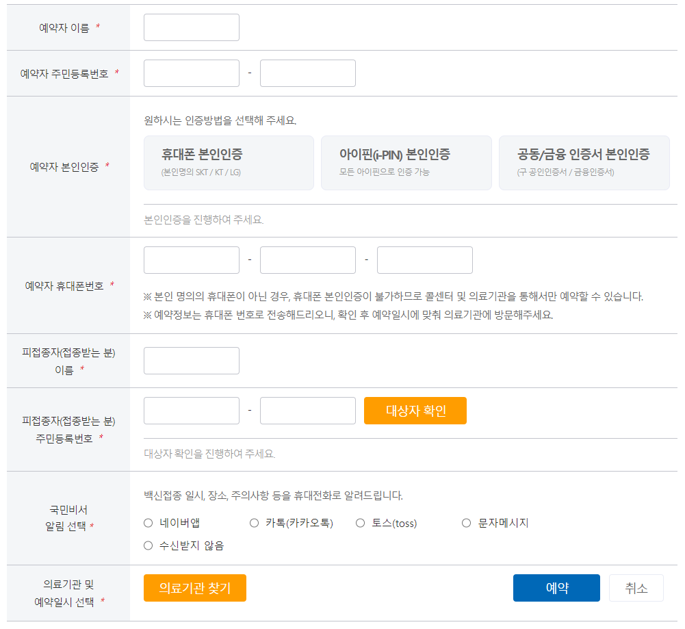접종대상자 본인이 예약해도 되지만
