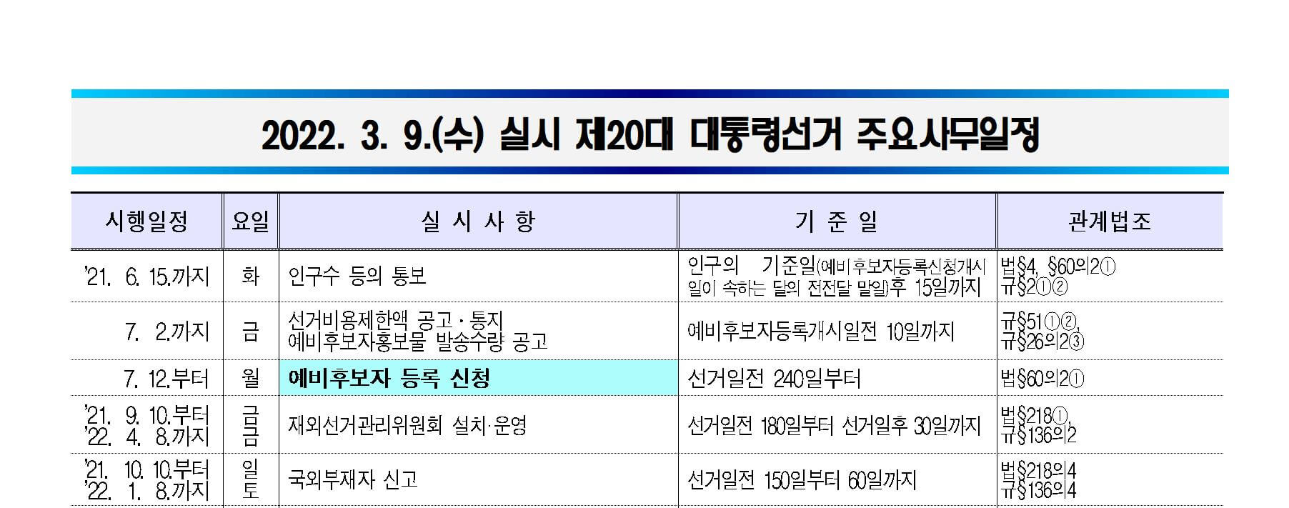 제20대 대통령선거 대선일은 3월 9일 수요일