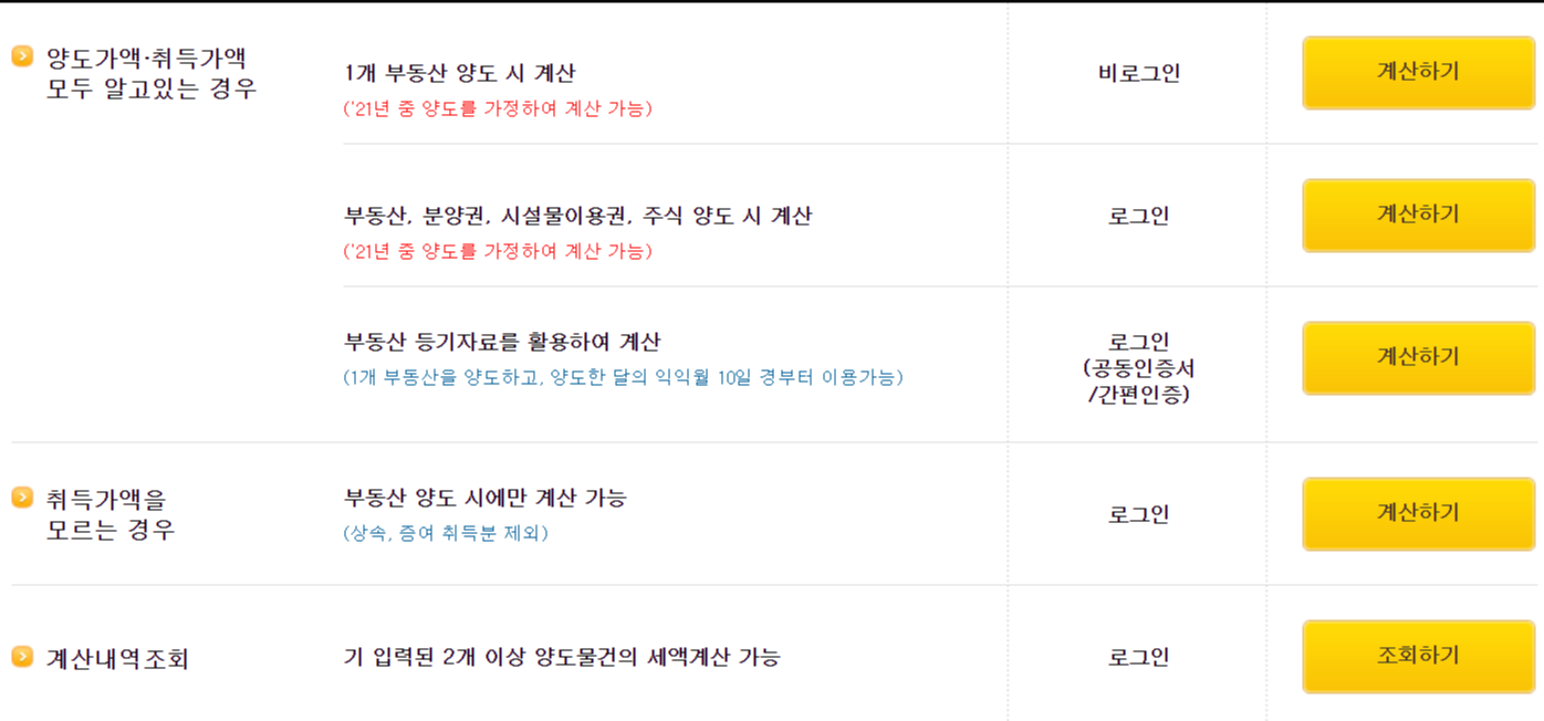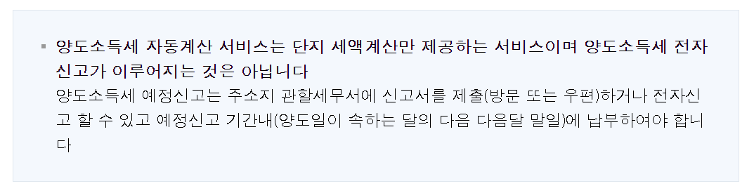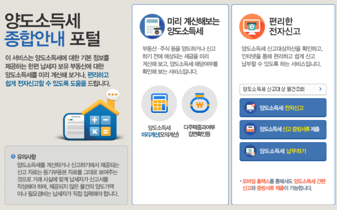 홈텍스 양도소득세계산기 이용서비스