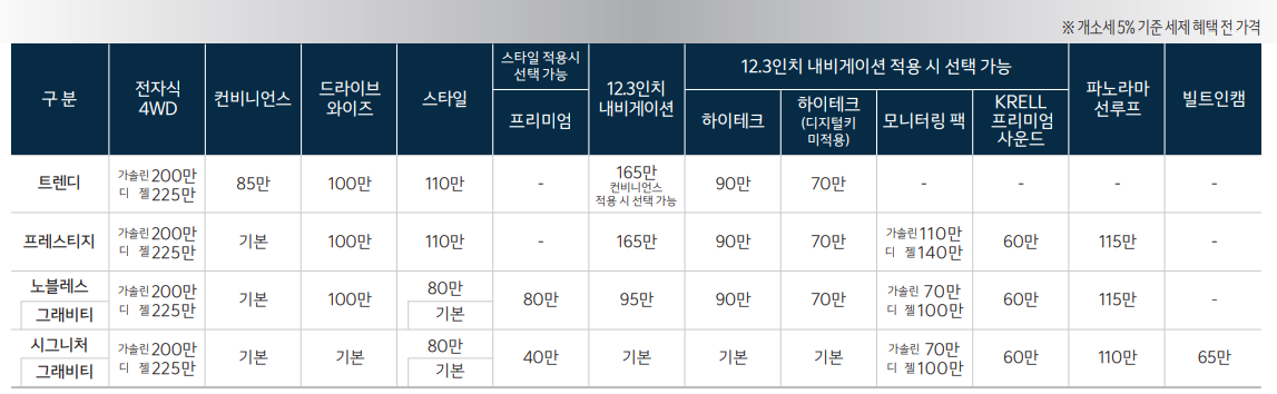 노블레스 2,869만원 (개소세 3.5% 반영)