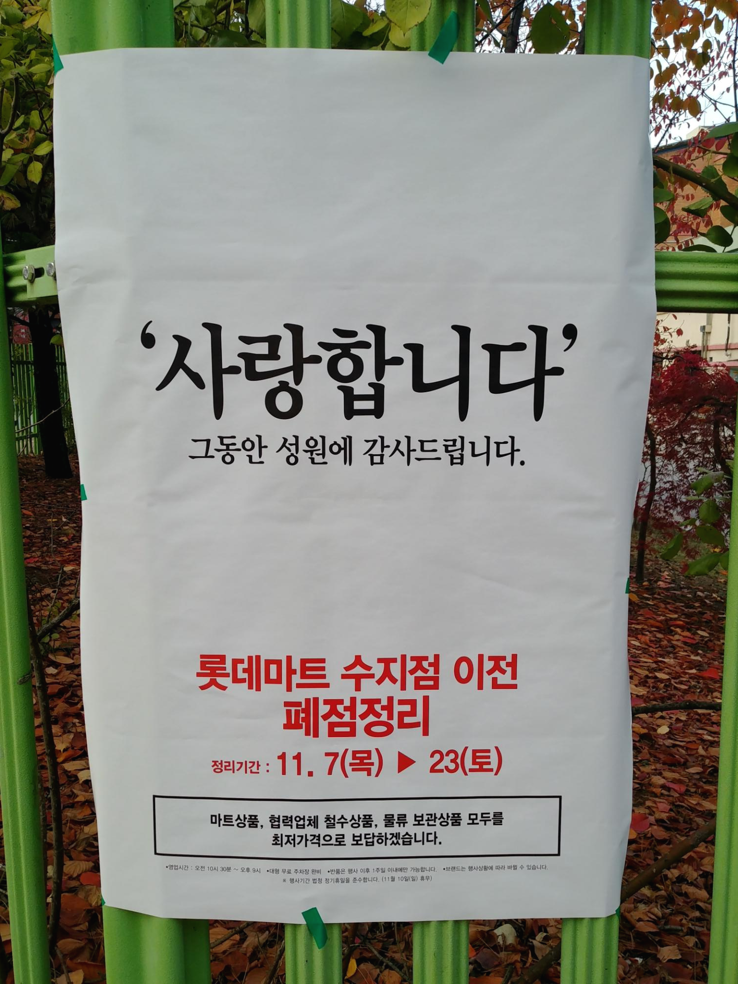 기존 수지구청 앞에 있던 롯데마트는 폐점