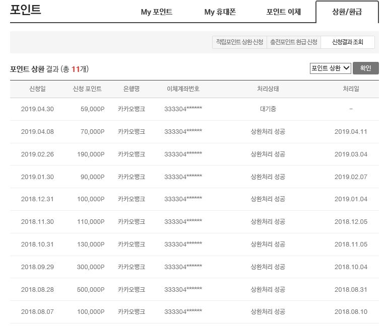 포인트 전환 당일 현금으로 바꾸고 있어요.