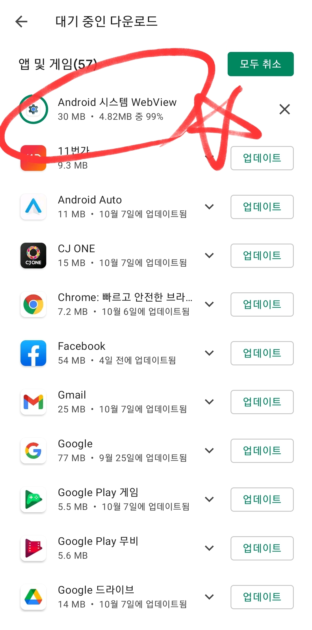 구글 WebView 업데이트 버전 이슈로