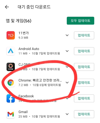 Chrom 앱을 최신버전으로