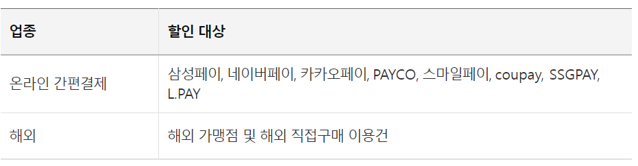 온라인 간편결제 및 해외결제 3% 결제일 할인을 받을 수 있는데