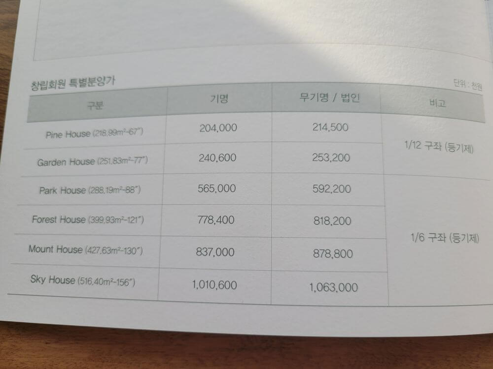 리조트 객실은 6가지 타입으로 구분되어 있는데 회원권은 기명회원, 무기명회원으로 나눠지는데 회원권 분양받는 목적에 따라 결정하면 되겠습니다. 현재 진행 중인 창립 회원 특별 분양가로 정리했습니다.