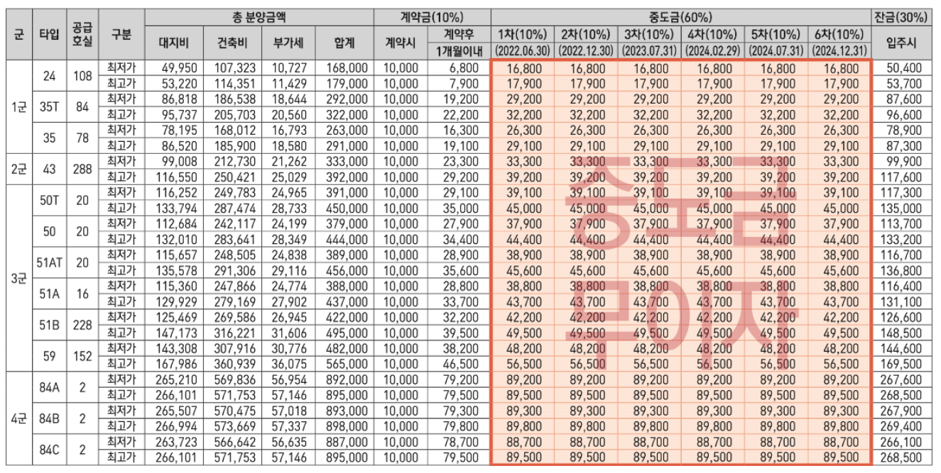 중도금 60% 무이자 적용됩니다.