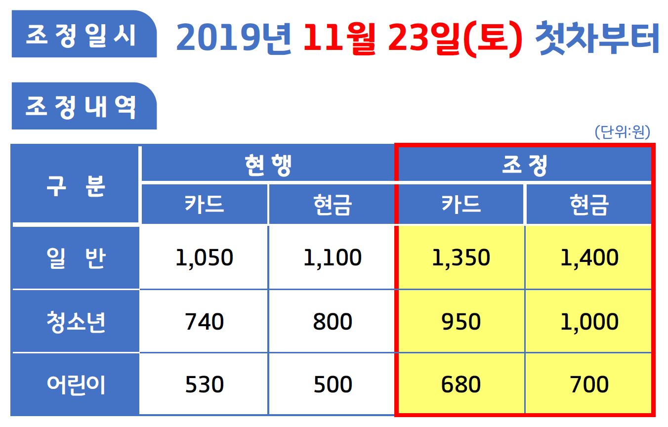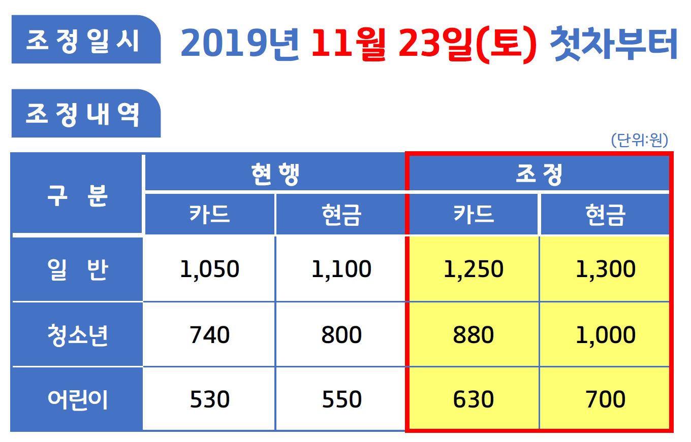 직행, 광역버스 등의 요금도 같이 공유합니다.